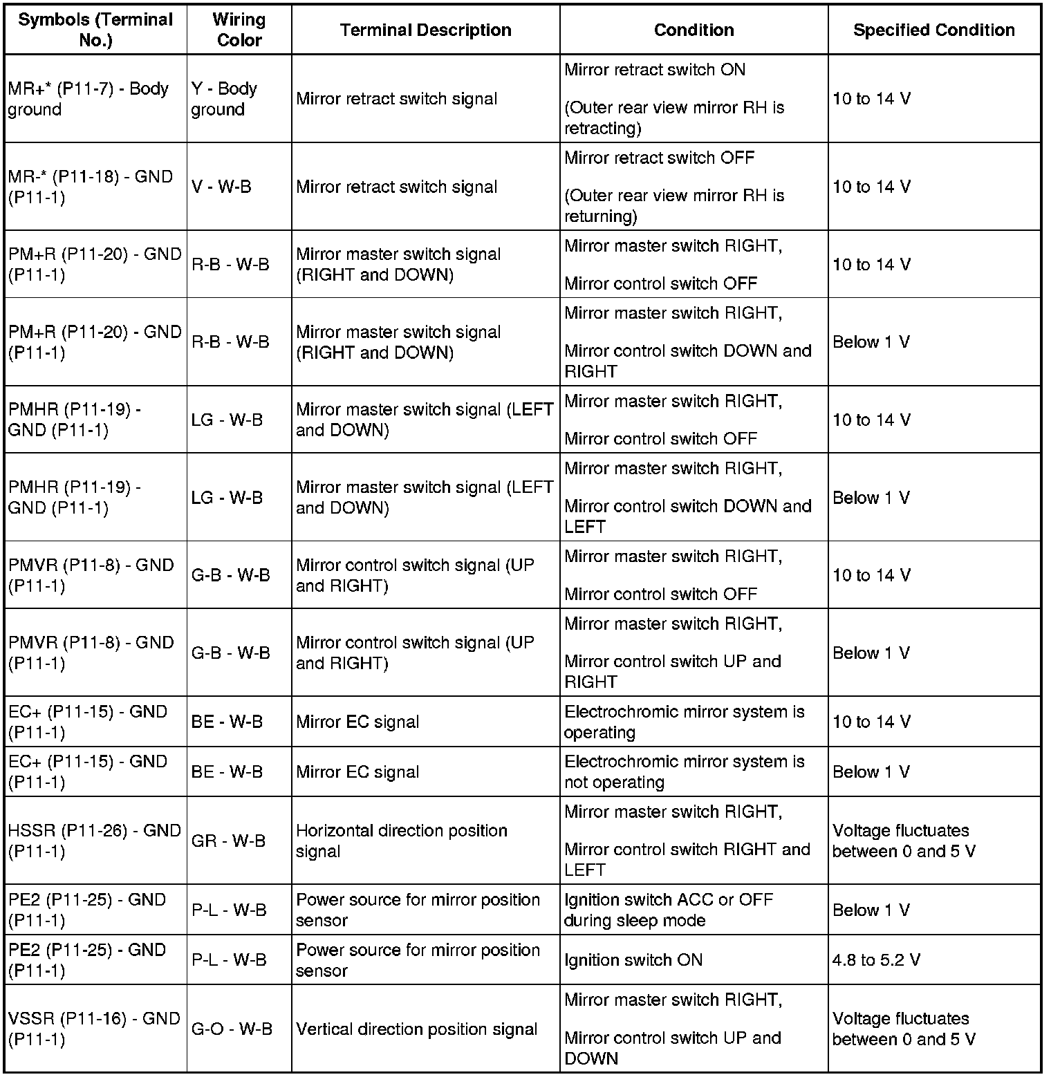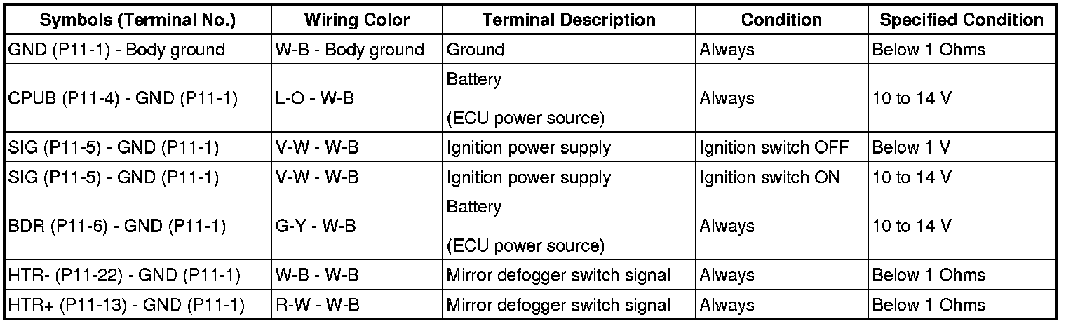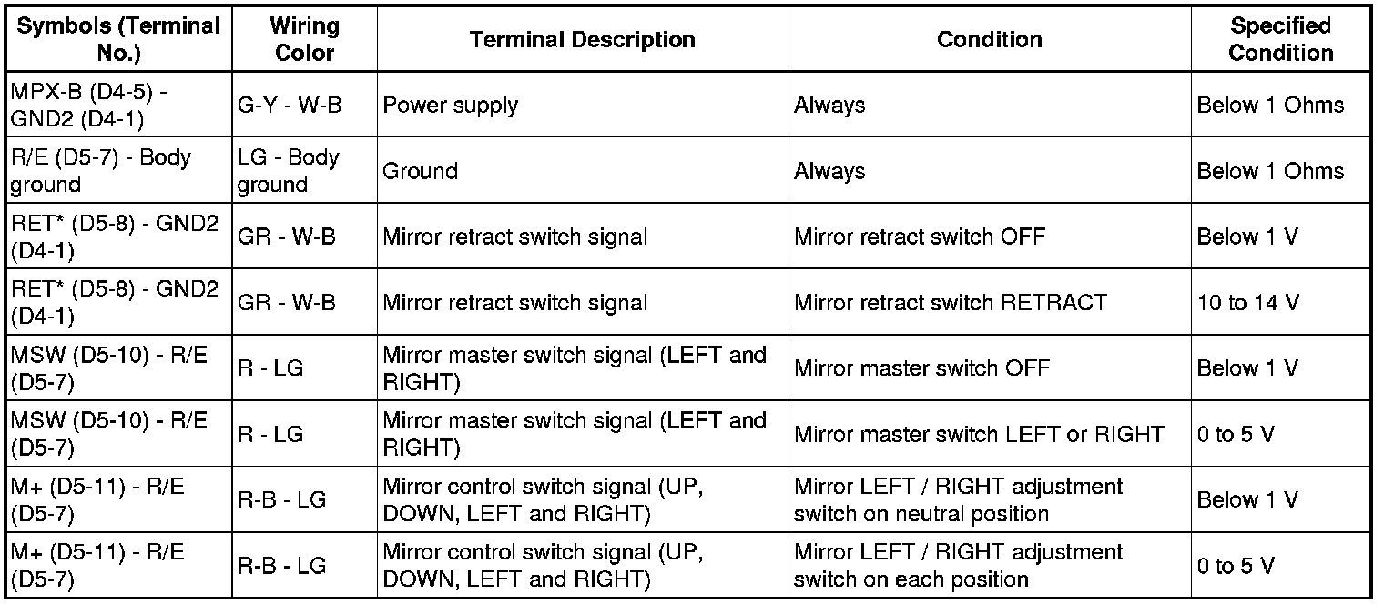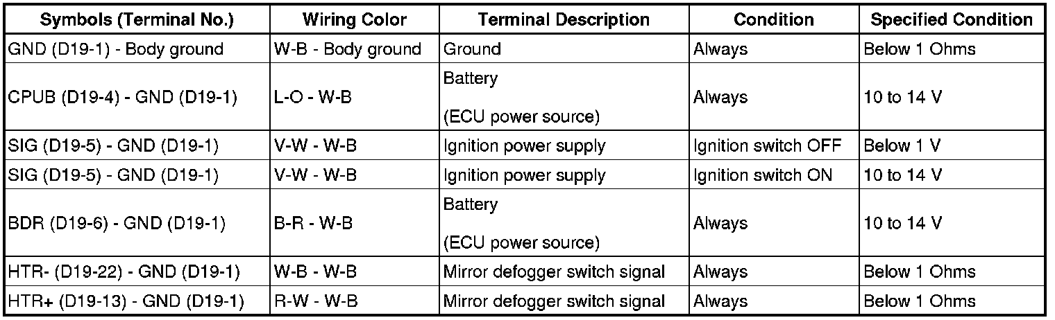 MIRROR: POWER MIRROR CONTROL SYSTEM: TERMINALS OF ECU