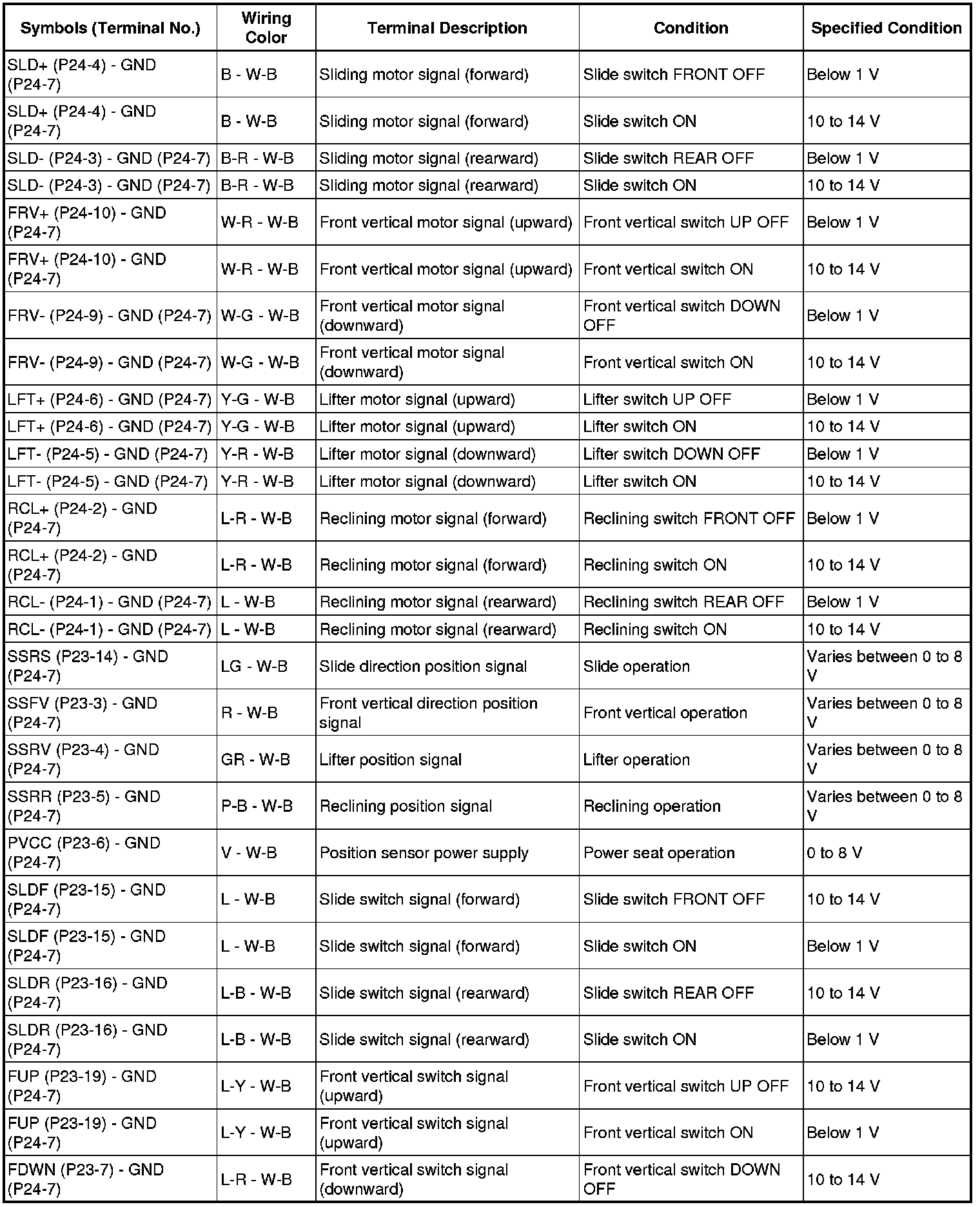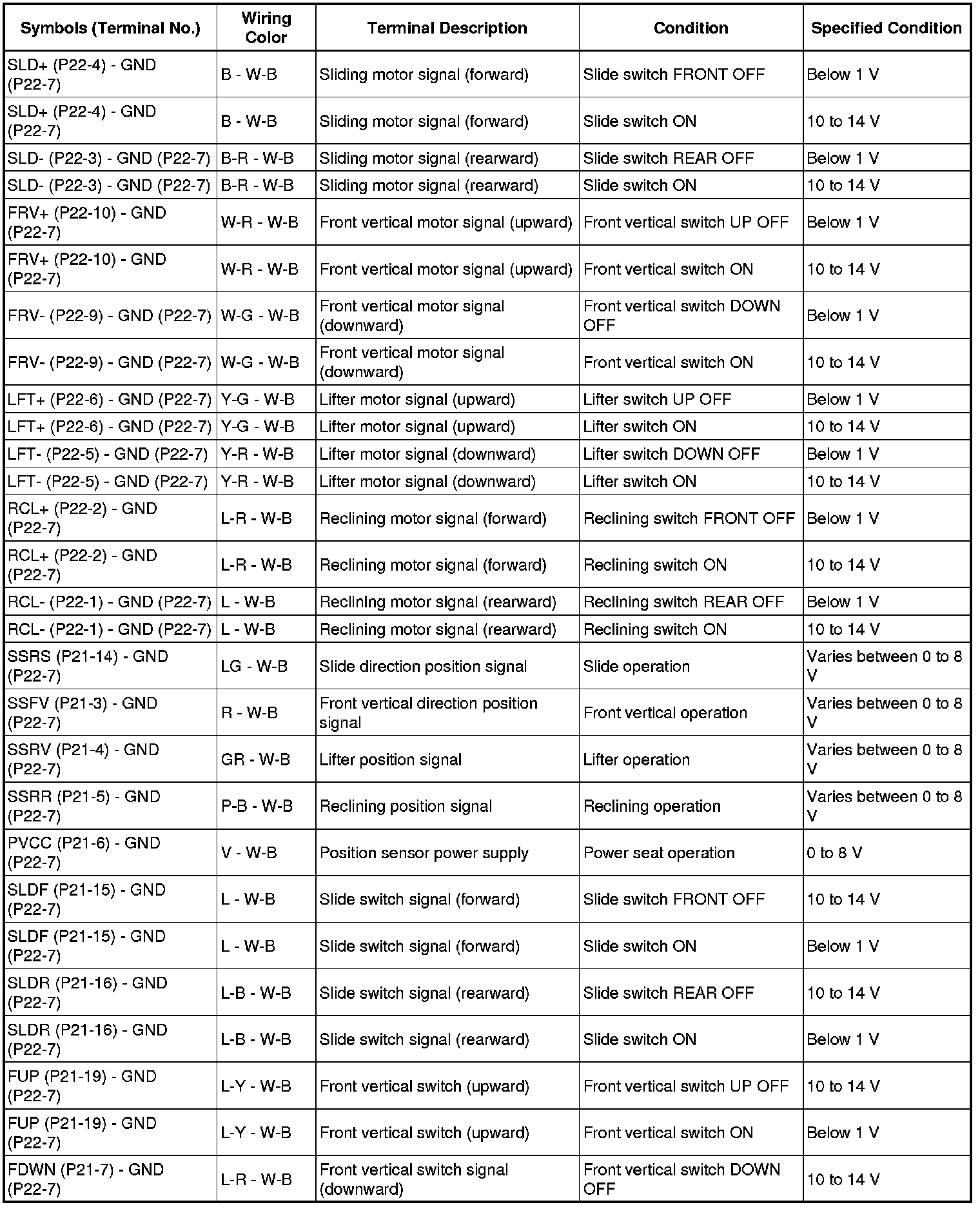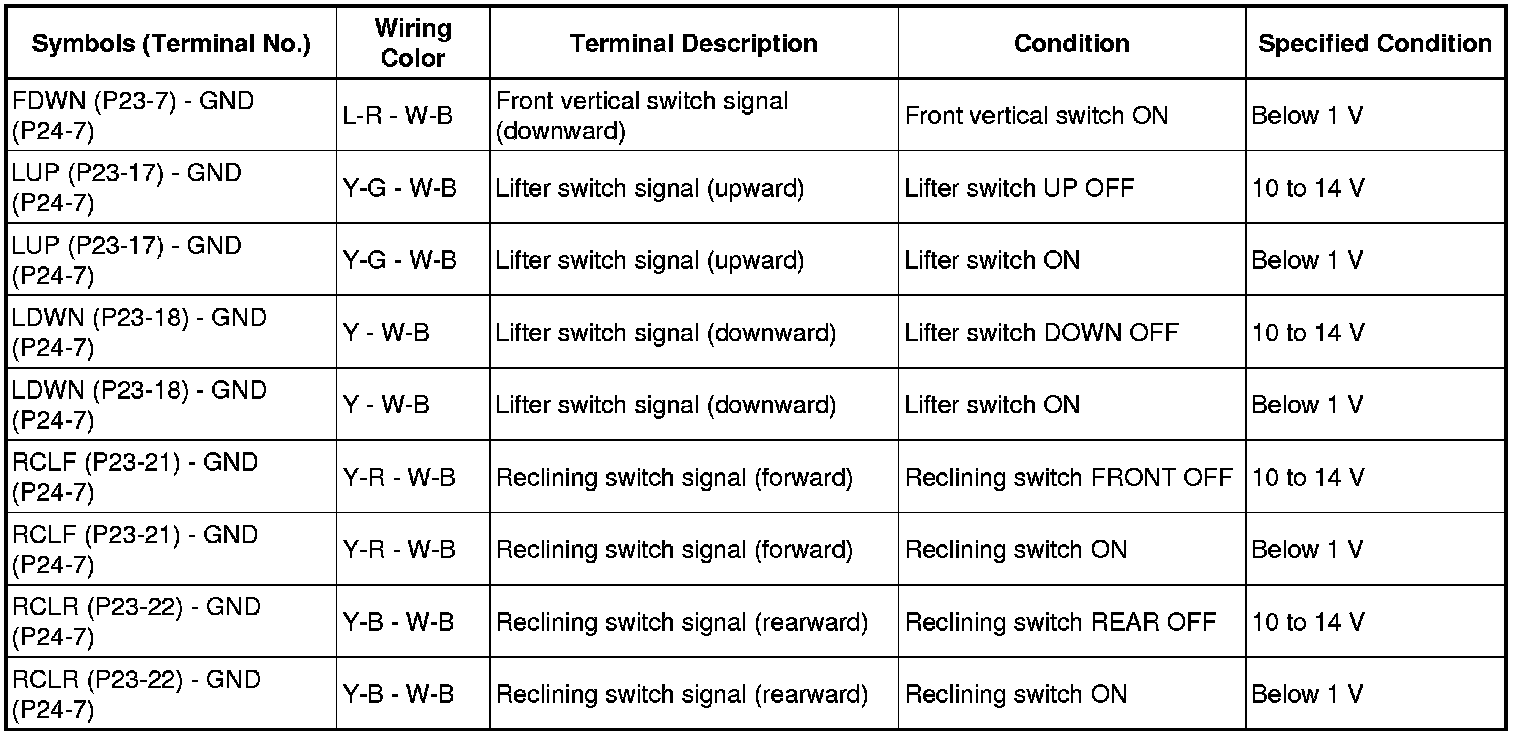SEAT: FRONT POWER SEAT CONTROL SYSTEM: TERMINALS OF ECU