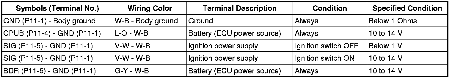 - If the result is not as specified, the ECU may have a malfunction.