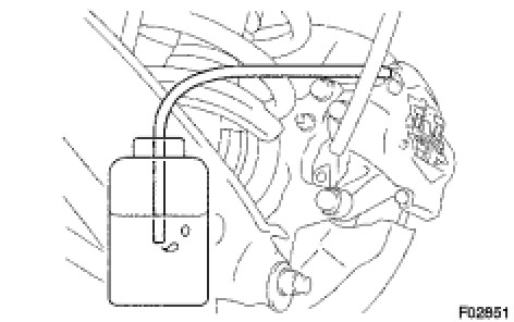 HINT: It is necessary to depress the brake pedal several times. Depressing and holding the brake pedal will cause the fluid to flow continuously.