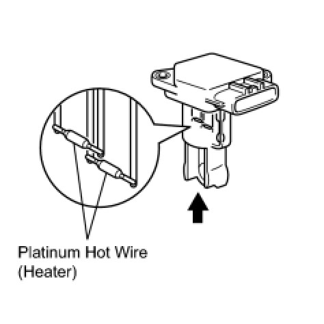 (c) Perform a visual check for any foreign matter on the platinum hot wire (heater) of the mass air flow meter shown in the illustration.