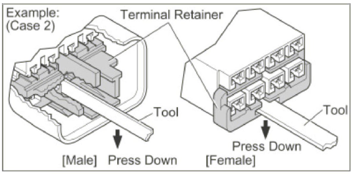 HOW TO REPLACE TERMINAL(with terminal retainer or secondary locking device)PREPARE THE SPECIAL TOOL