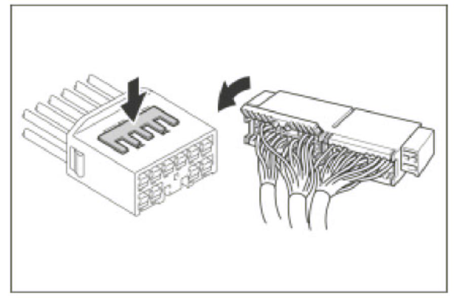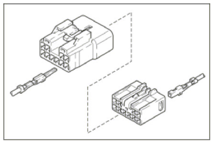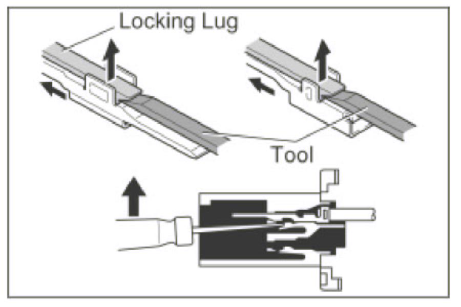 HINT: To remove the terminal from the connector, please construct and use the special tool or like object shown on the left.