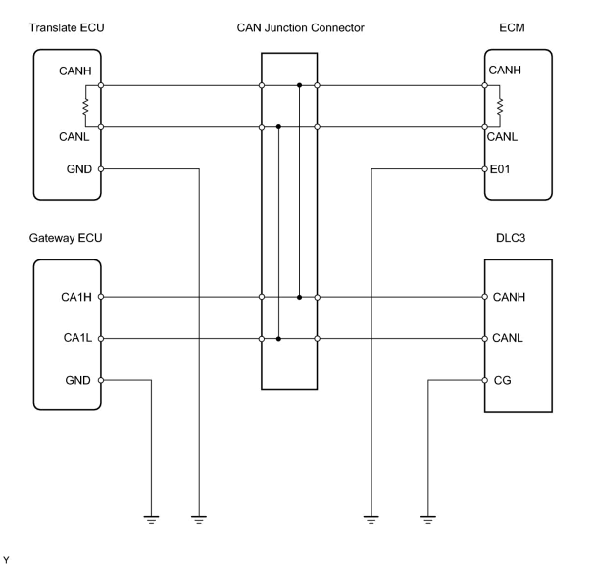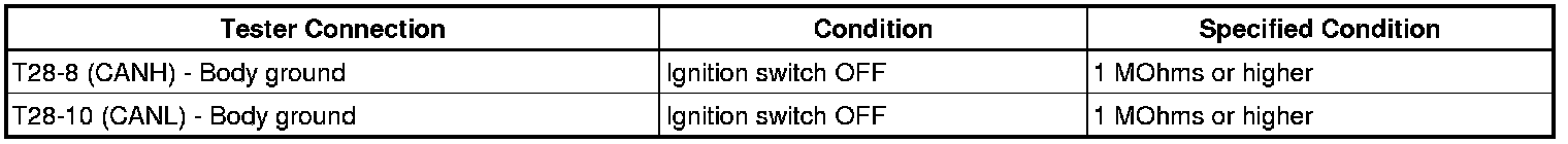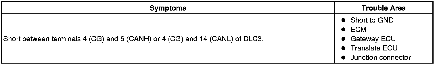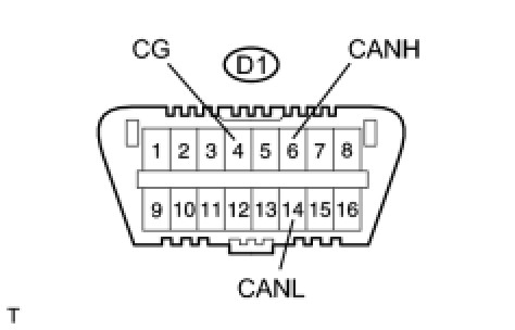 A short to GND may be occurring in the CAN bus line when there is a short between terminals 4 (CG) and 6 (CANH) or terminals 4 (CG) and 14 (CANL) of the DLC3.