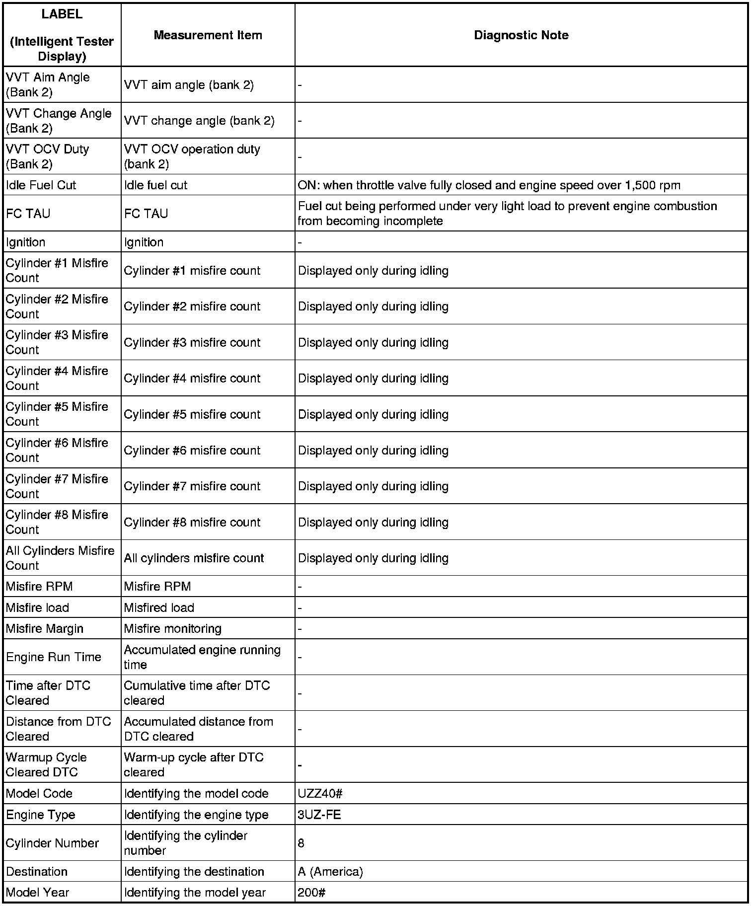 3UZ-FE ENGINE CONTROL SYSTEM: SFI SYSTEM: FREEZE FRAME DATA