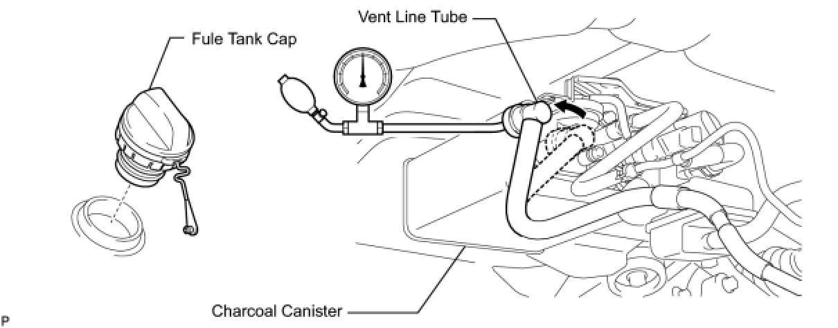 HINT: Perform this inspection with the fuel tank less than 90% full. When the fuel tank is full, the fuel cutoff valve closes and pressure is released through the 1.5 mm orifice. As a result, when the fuel tank cap is removed, the pressure does not decrease smoothly.