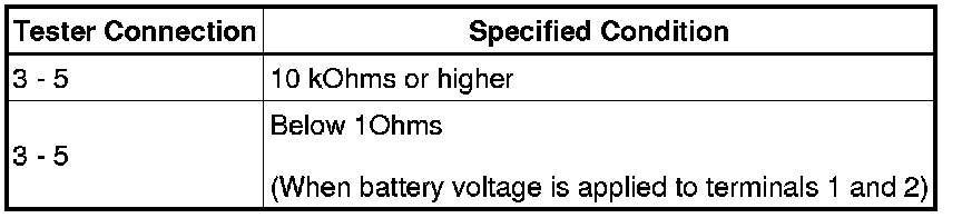 If the result is not as specified, replace the relay.