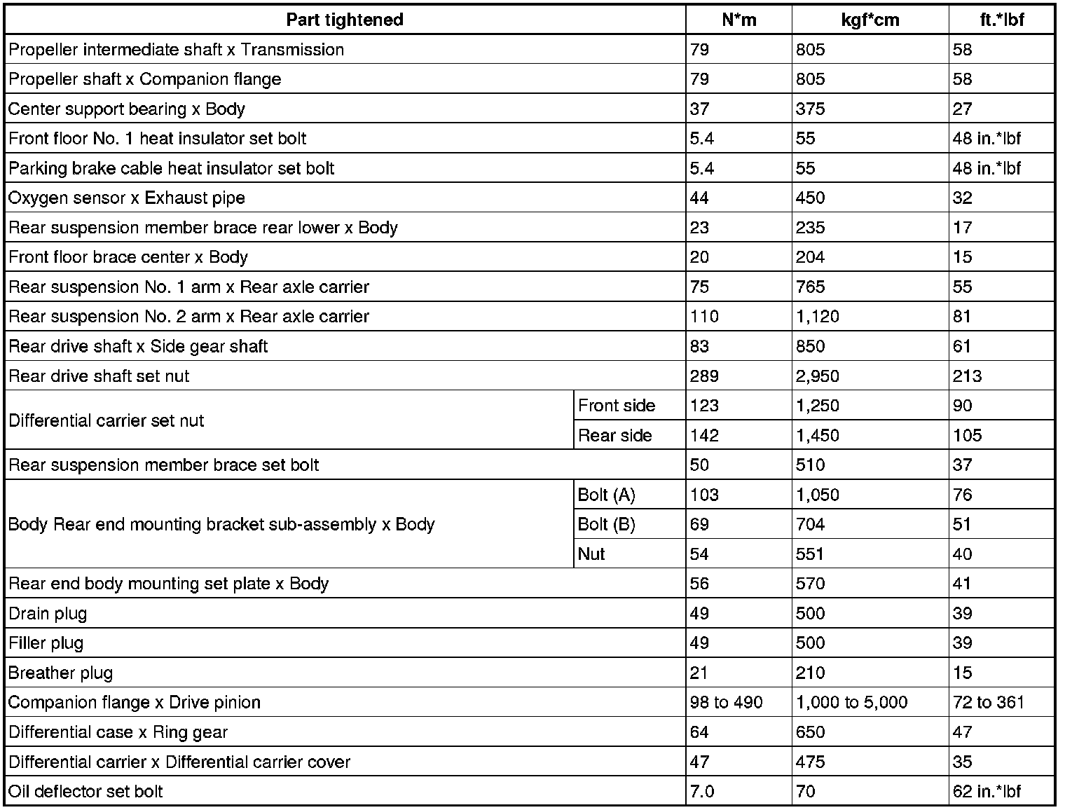 SERVICE SPECIFICATIONS: DIFFERENTIAL: TORQUE SPECIFICATIONS