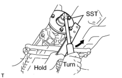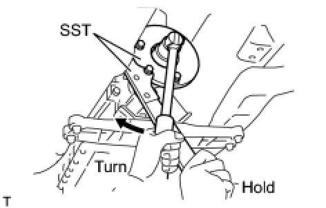 (c) Using SST and a 30 mm socket wrench, remove the nut.