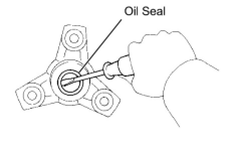 (f) Using a screwdriver, remove the oil seal from the automatic transmission flange yoke.
