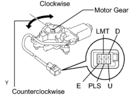 - Be sure not to apply battery voltage to terminals 3 (PLS), 4 (LMT) and 5 (E) of the power window regulator motor RH connector, because it might damage the pulse sensor and the limit switch.