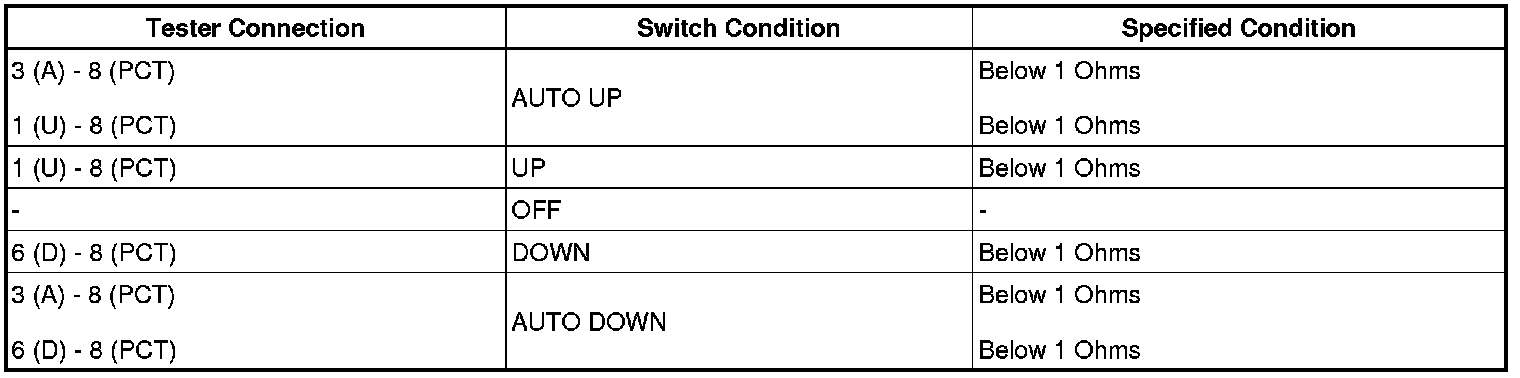 7. CHECK WIRE HARNESS (DOOR ECU FRONT RH - POWER WINDOW MOTOR)