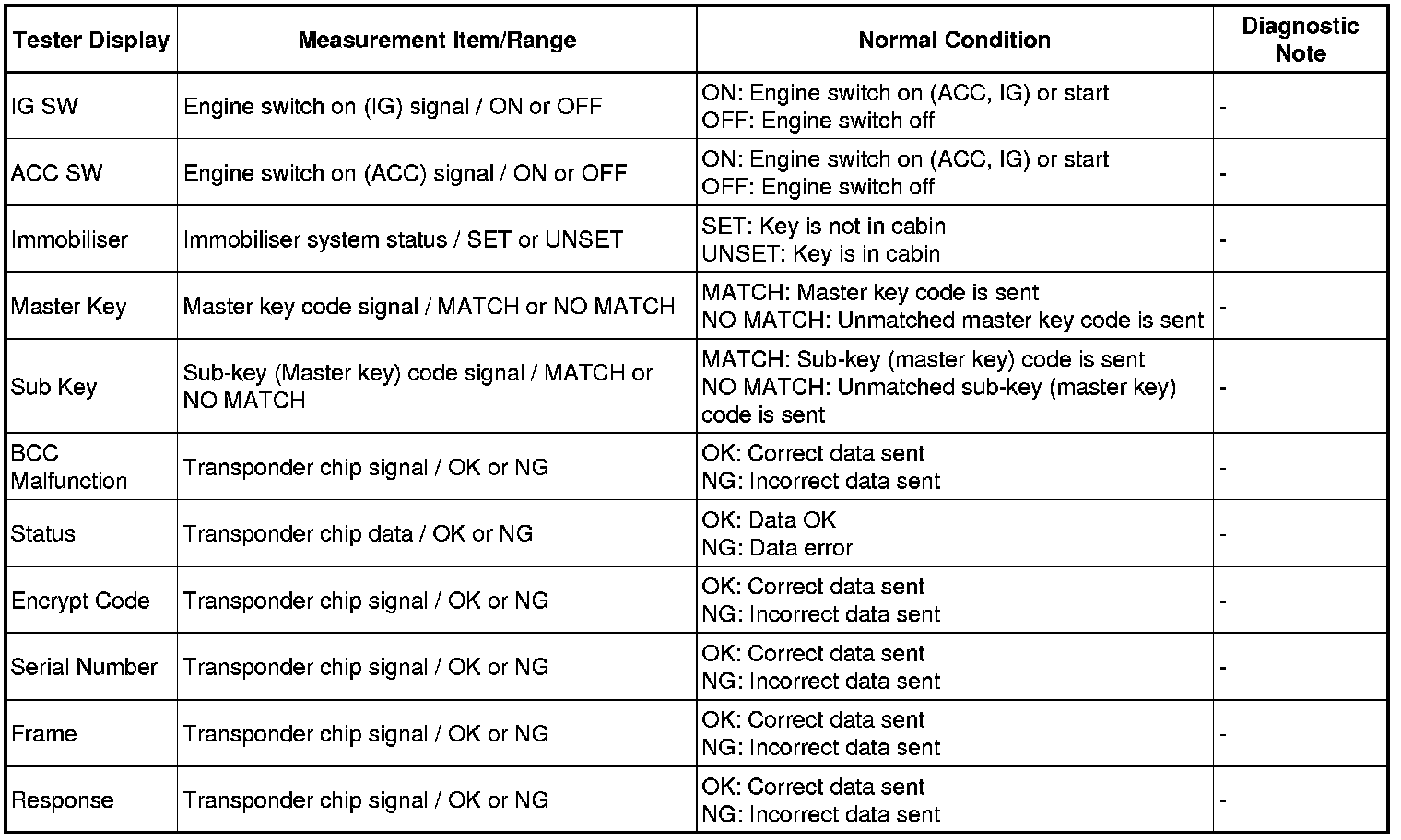 ENGINE IMMOBILISER: ENGINE IMMOBILISER SYSTEM: DATA LIST / ACTIVE TEST