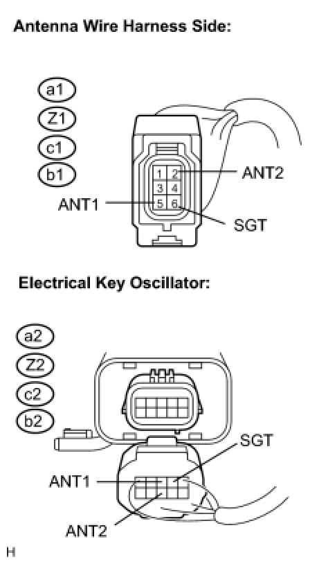 The antenna are built into the door outside handles of the all doors. Terminals ANT1 and ANT2 of the antenna (door outside handle) detect if the electrical key is within the action area around the door outside handle.