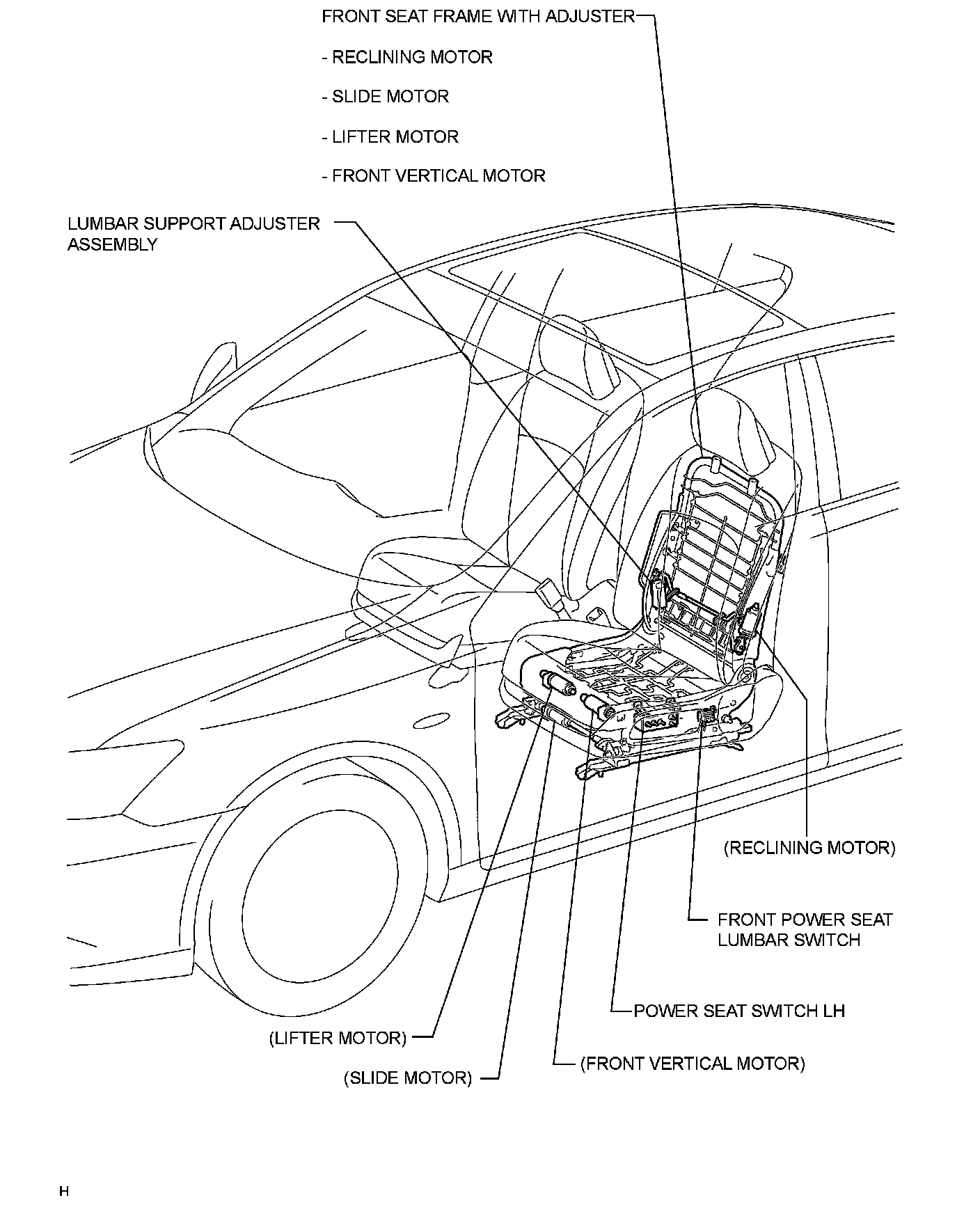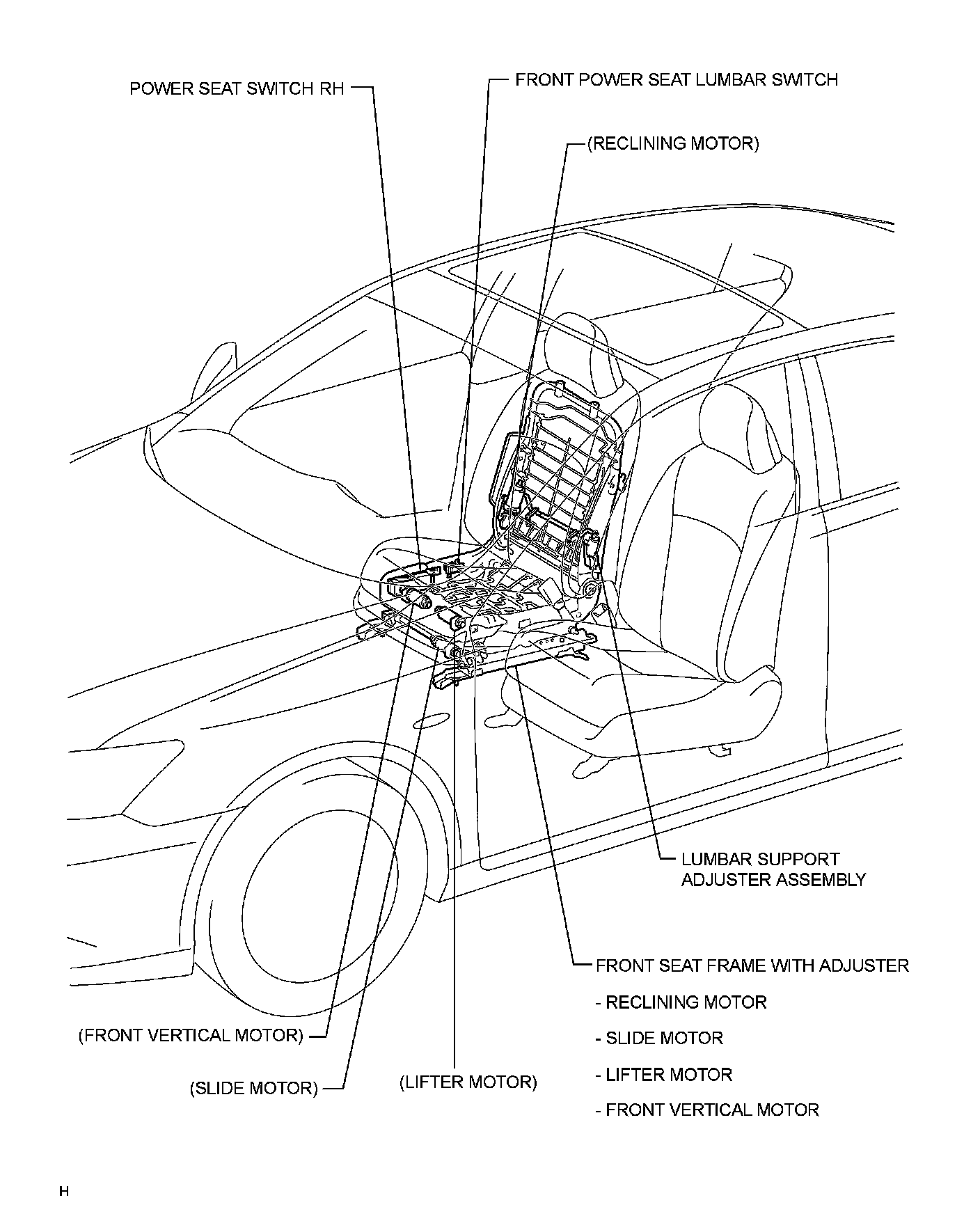 SEAT: FRONT POWER SEAT CONTROL SYSTEM (w/o Seat Position Memory System): PARTS LOCATION
