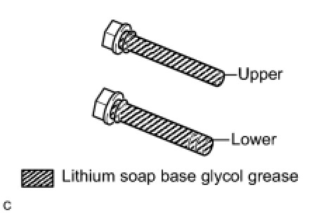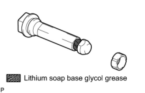 (a) Apply a light layer of lithium soap base glycol grease to the sliding and sealing surfaces of the rear disc brake cylinder slide pins (upper and lower).