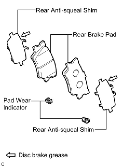 * Apply disc brake grease to the area that contacts the rear anti-squeal shim.