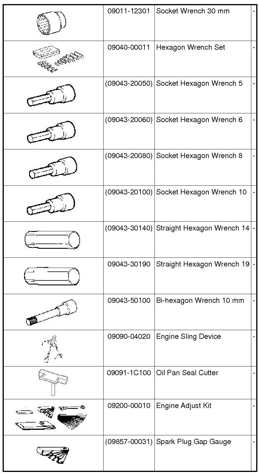 PREPARATION: 2GR-FE ENGINE MECHANICAL: RECOMMENDED TOOLS