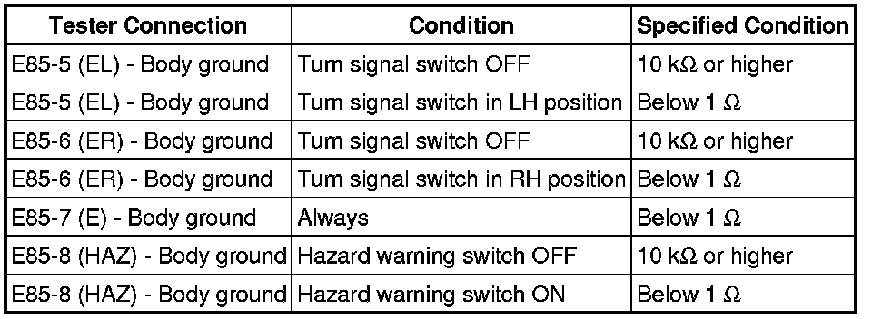 (d) If the result is not as specified, replace the turn signal flasher assembly.