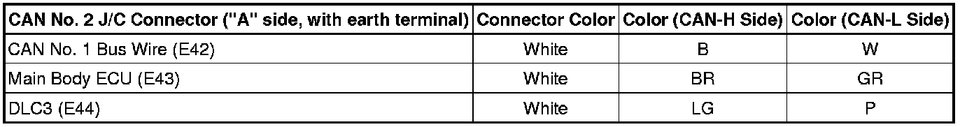 * The connectors connected to the CAN No. 2 J/C can be distinguished according to the color of the communication bus wires and the shape of the connectors.