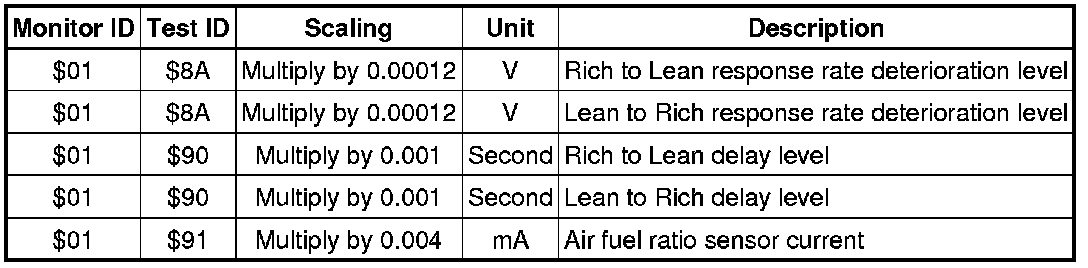 If you use a generic scan tool, multiply the test value by the scaling value listed below.