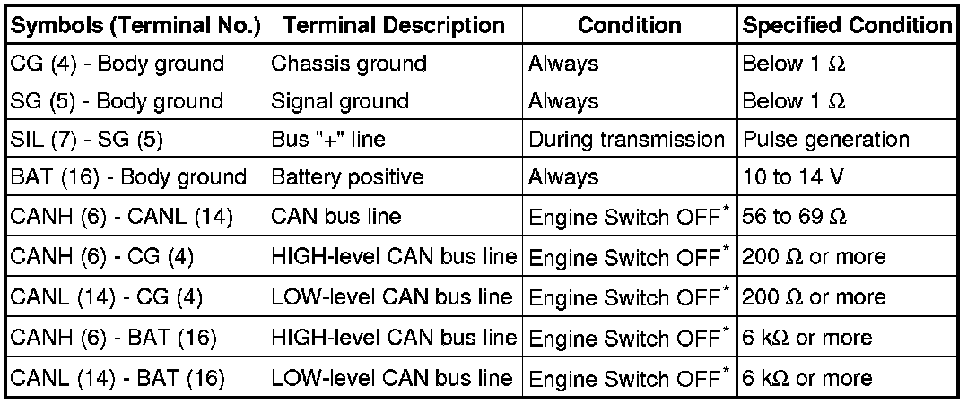 *: Before measuring the resistance, leave the vehicle as is for at least 1 minute and do not operate the engine switch, any other switches or the doors.