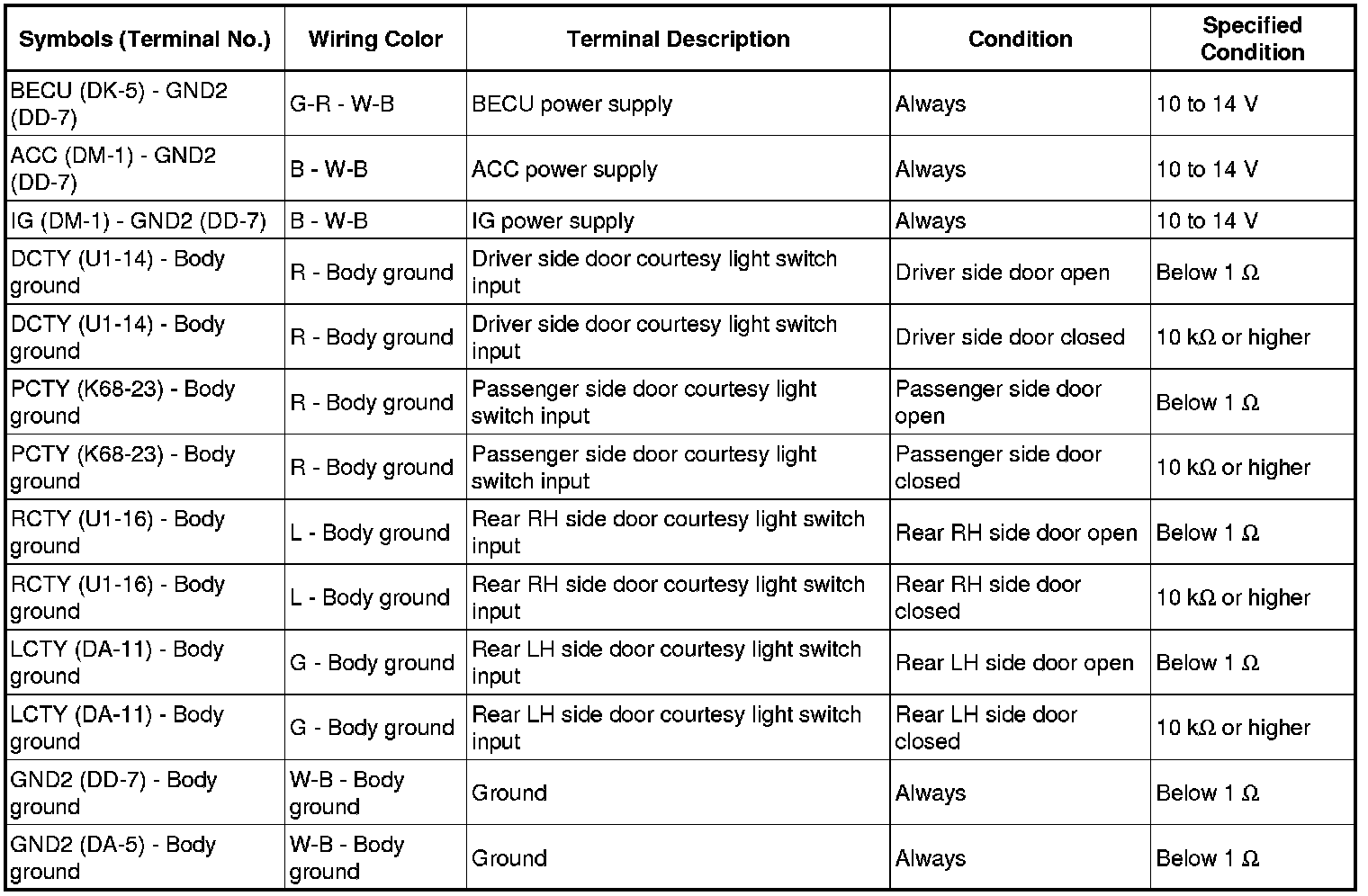 DOOR LOCK: WIRELESS DOOR LOCK CONTROL SYSTEM: TERMINALS OF ECU