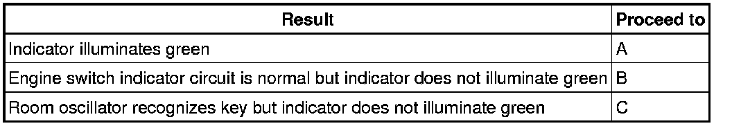 (a) When the key is inside the vehicle and the shift lever position is in P, check that depressing the brake pedal causes the engine switch indicator to illuminate green.