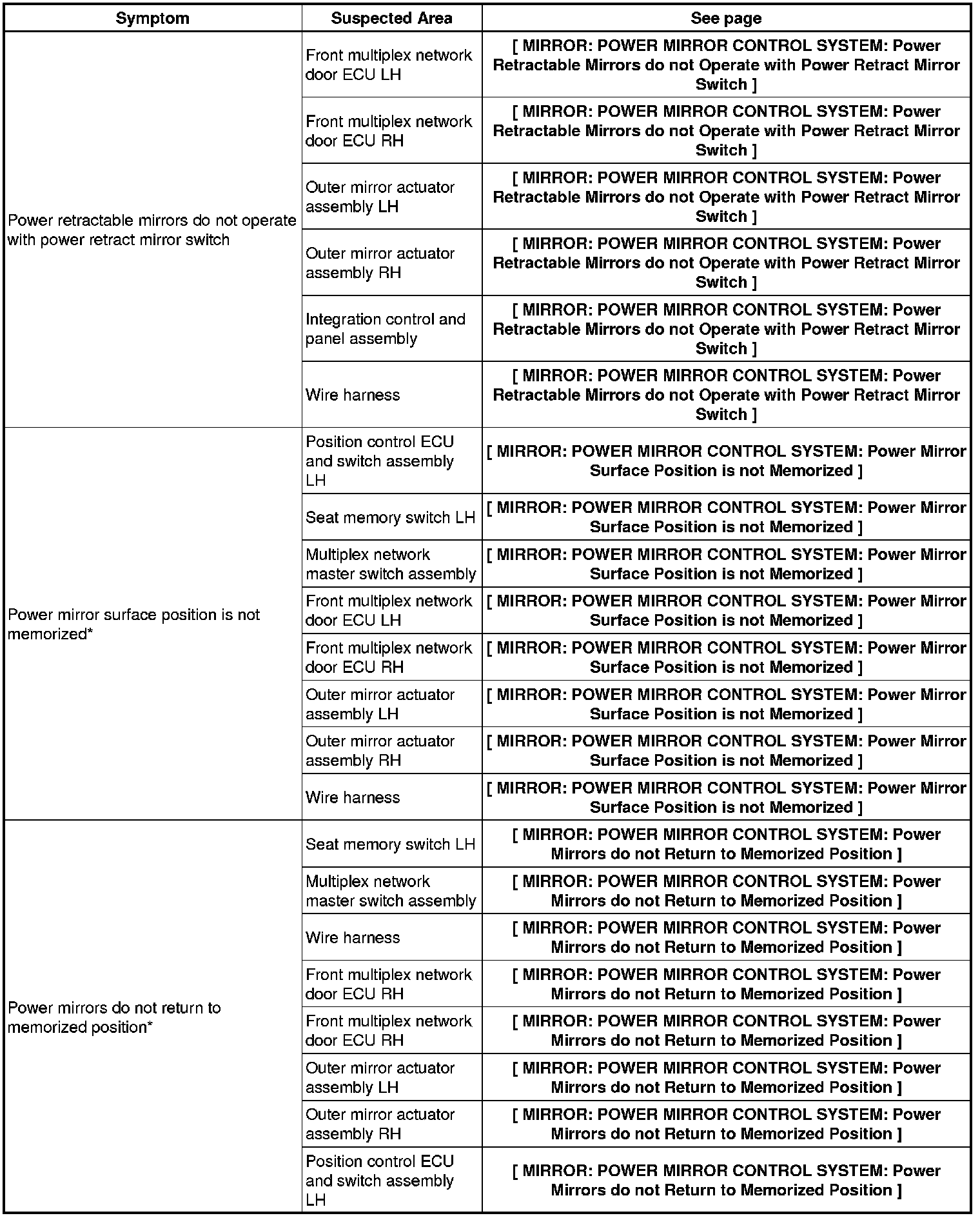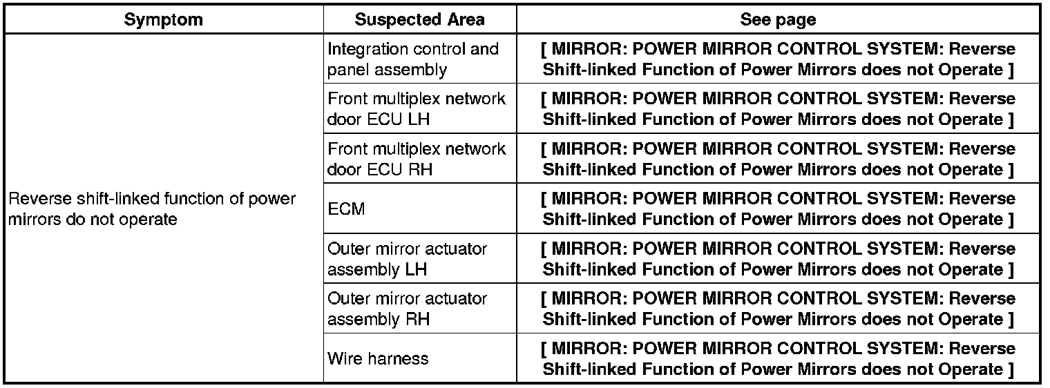 MIRROR: POWER MIRROR CONTROL SYSTEM: PROBLEM SYMPTOMS TABLE
