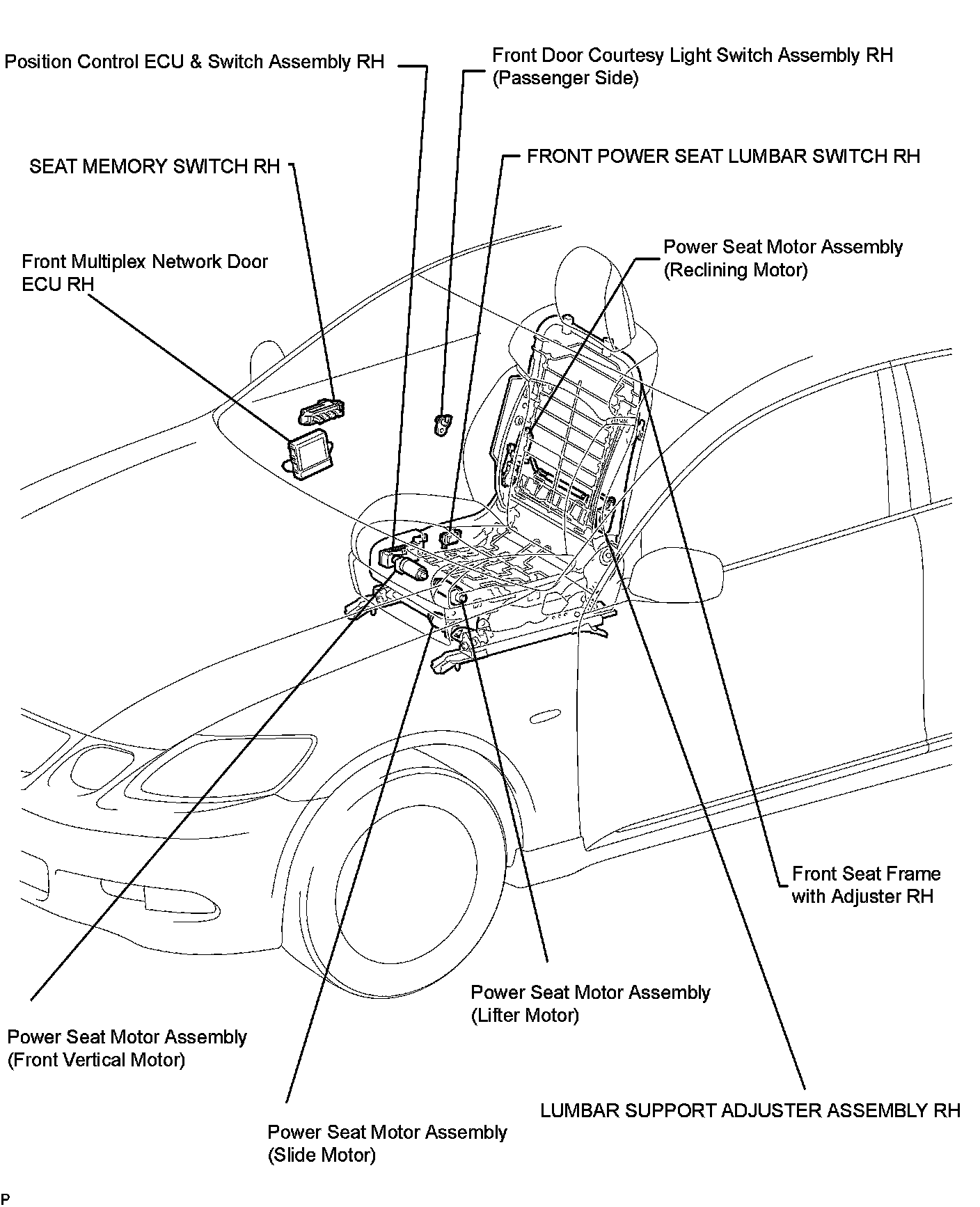 SEAT: FRONT POWER SEAT CONTROL SYSTEM (w/ Seat Position Memory System): PARTS LOCATION