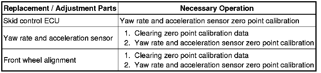 * After replacing the VSC relevant components or performing "Front wheel alignment adjustment", clear and read the sensor calibration data.