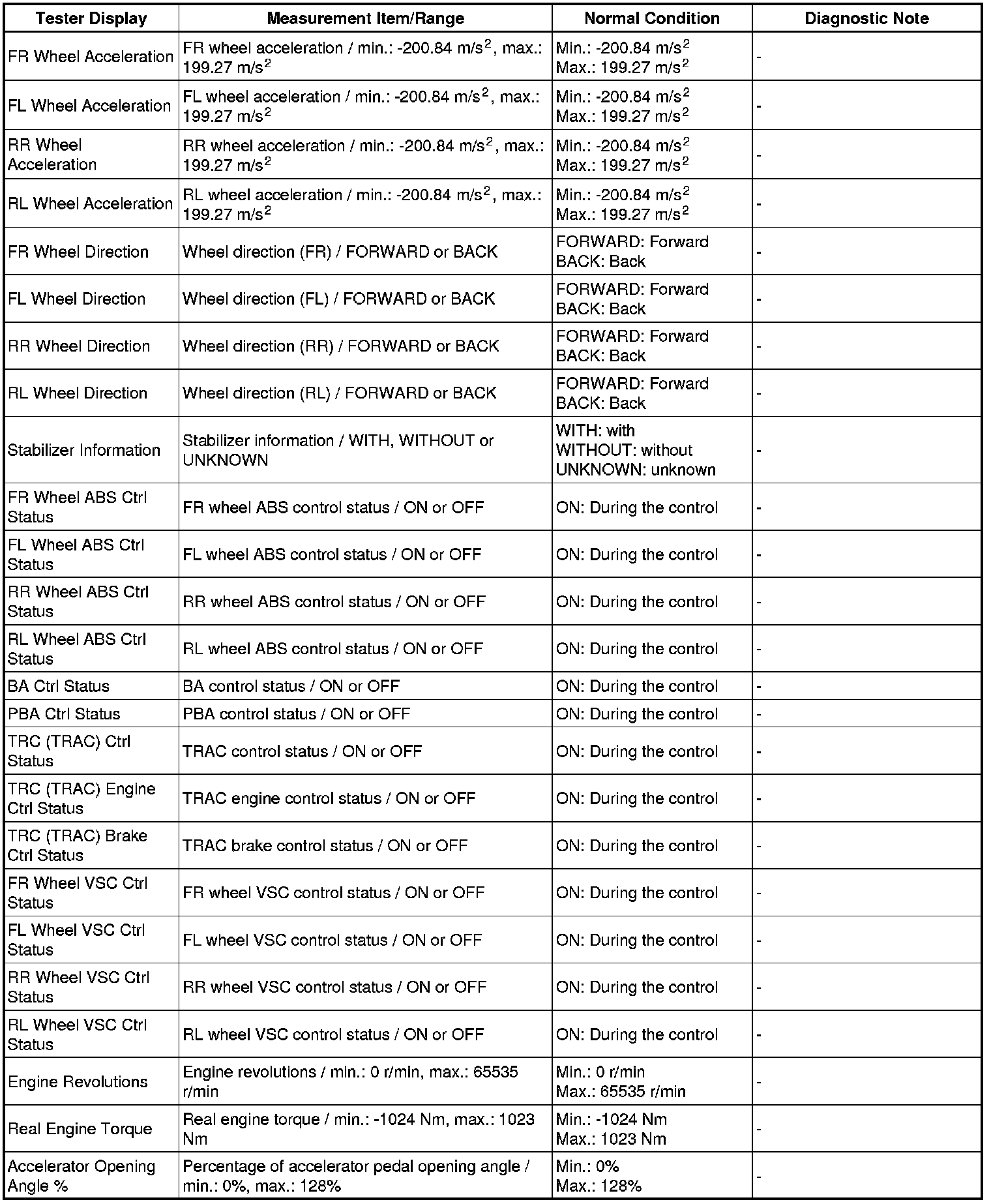 With the Techstream connected to the DLC3 and the engine switch on (IG), the Electronically Controlled Brake System, ABS, and VSC Data List can be displayed. Follow the prompts on the tester screen to access the Data List.