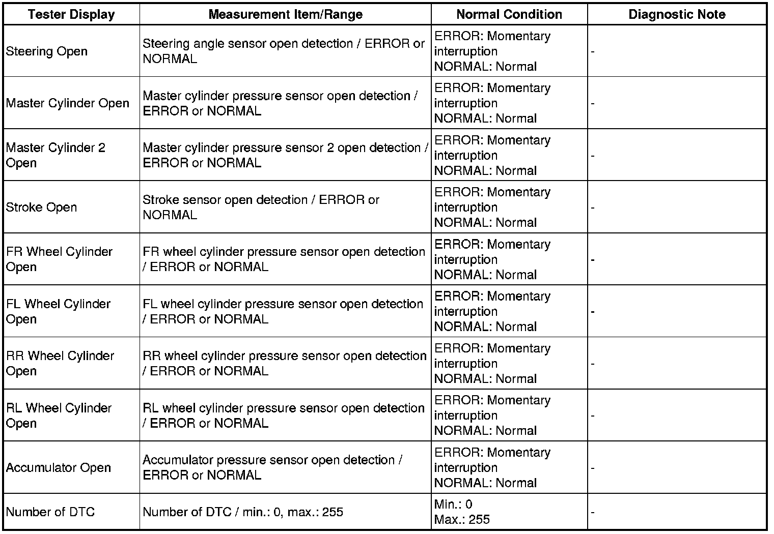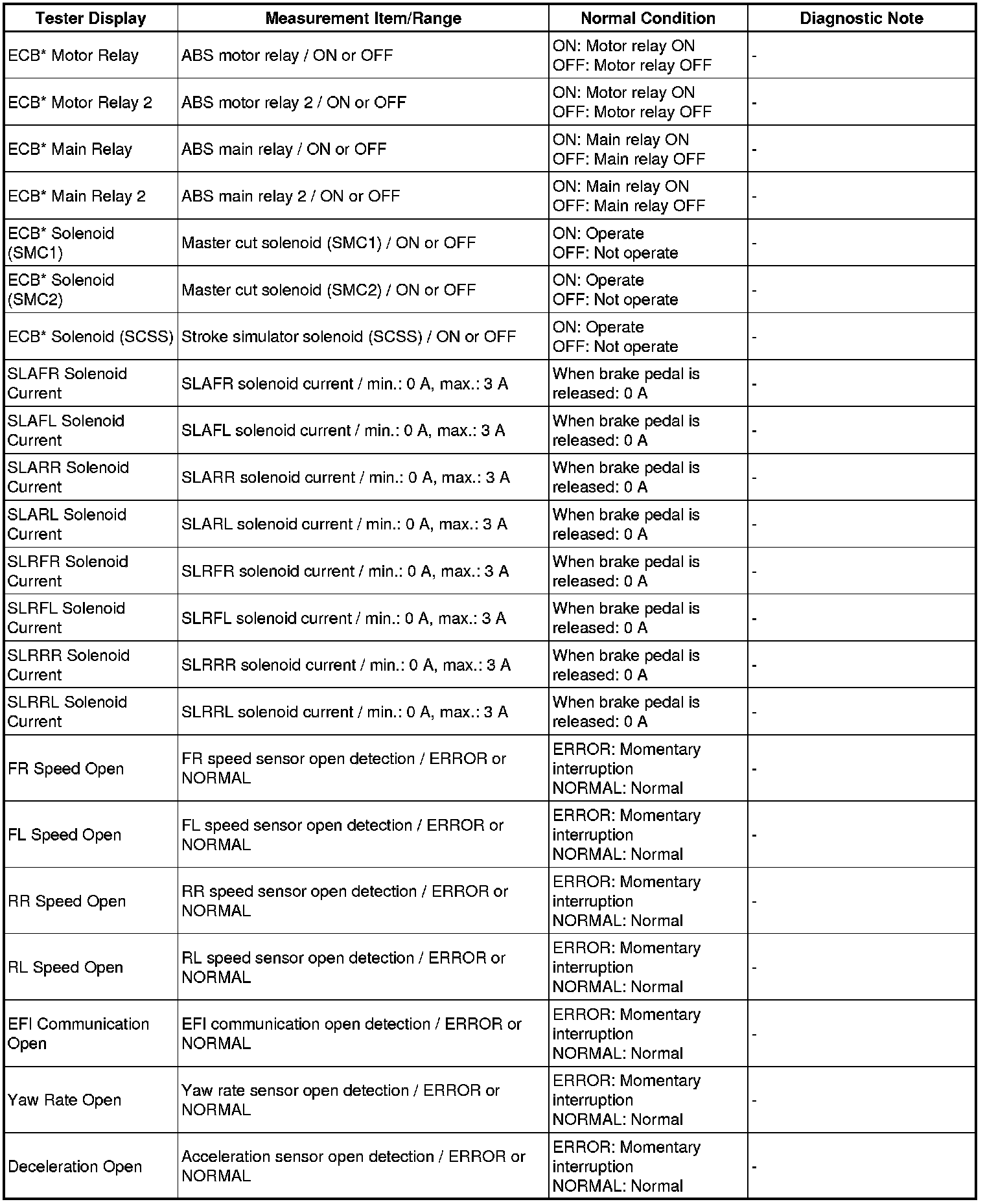 BRAKE CONTROL: ELECTRONICALLY CONTROLLED BRAKE SYSTEM: DATA LIST / ACTIVE TEST