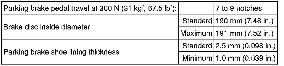 SERVICE SPECIFICATIONS: PARKING BRAKE: SERVICE DATA