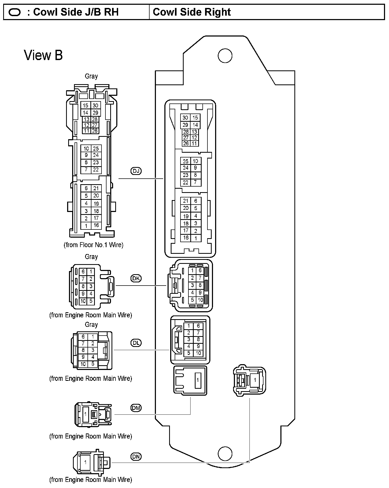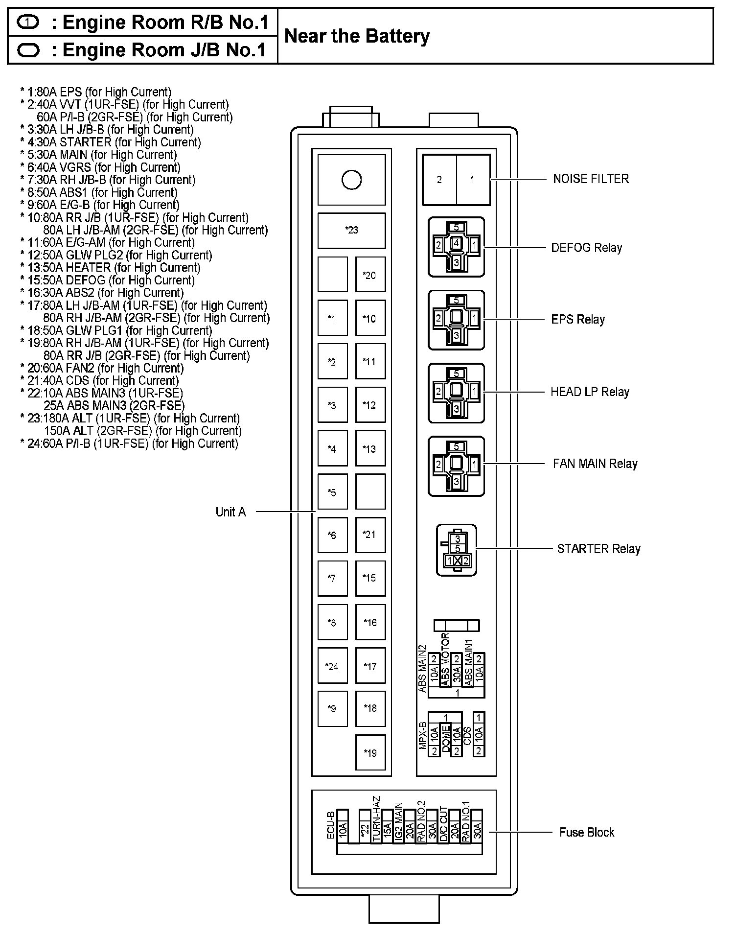 Engine Room R/B No.1, J/B No.1 - Near the Battery: