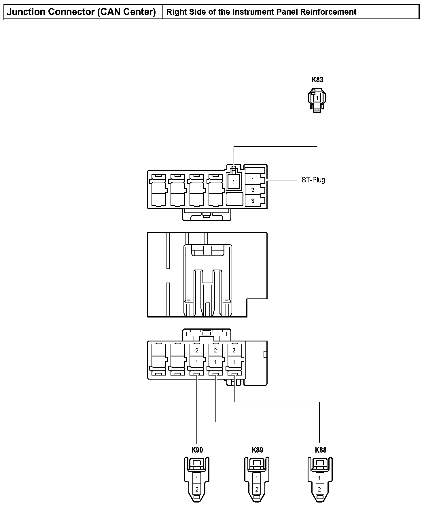 Junction Connector (CAN Center) - Right Side of the Instrument Panel Reinforcement: