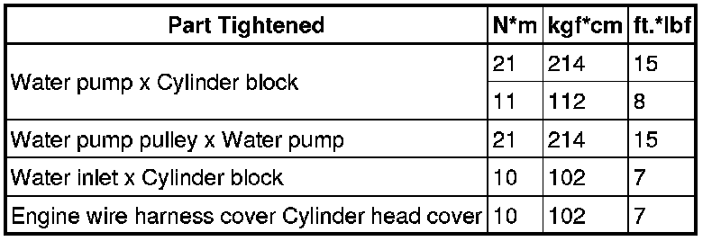 SERVICE SPECIFICATIONS: 2GR-FSE COOLING: TORQUE SPECIFICATIONS