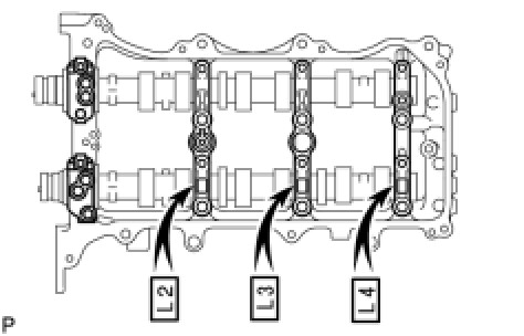 (b) Install the camshaft No. 3 and camshaft No. 4 to the camshaft housing.
