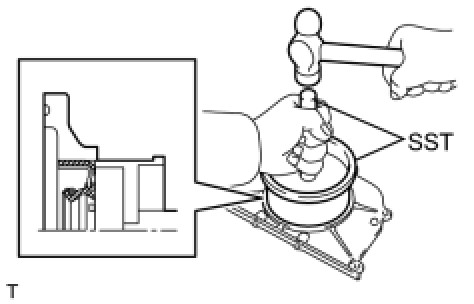 (c) Using SST, tap in a new oil seal until its surface is flush with the oil seal retainer edge.