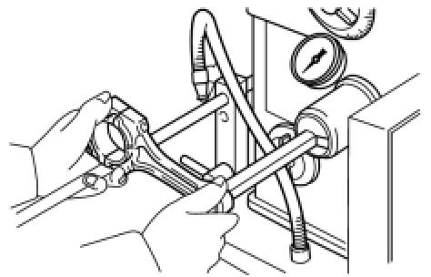 (d) Using a pin hole grinder, hone the bush to obtain the standard specified clearance between the bush and piston pin.