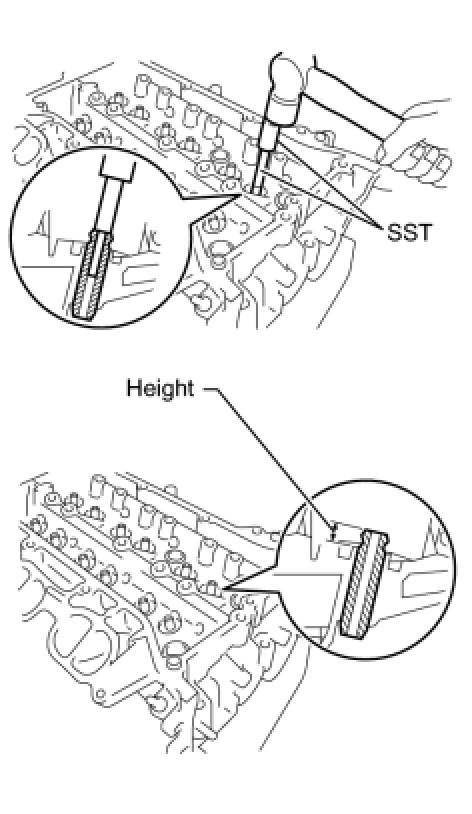 (c) Using SST and a hammer, tap in the 3 tight plugs shown in the illustration.