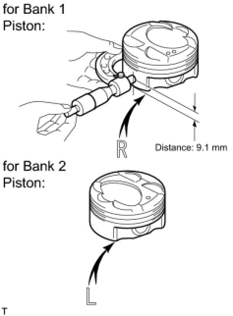 (a) Using a micrometer, measure the piston diameter at a right angle to the piston center line where the distance from the bottom edge of the piston is as specified.