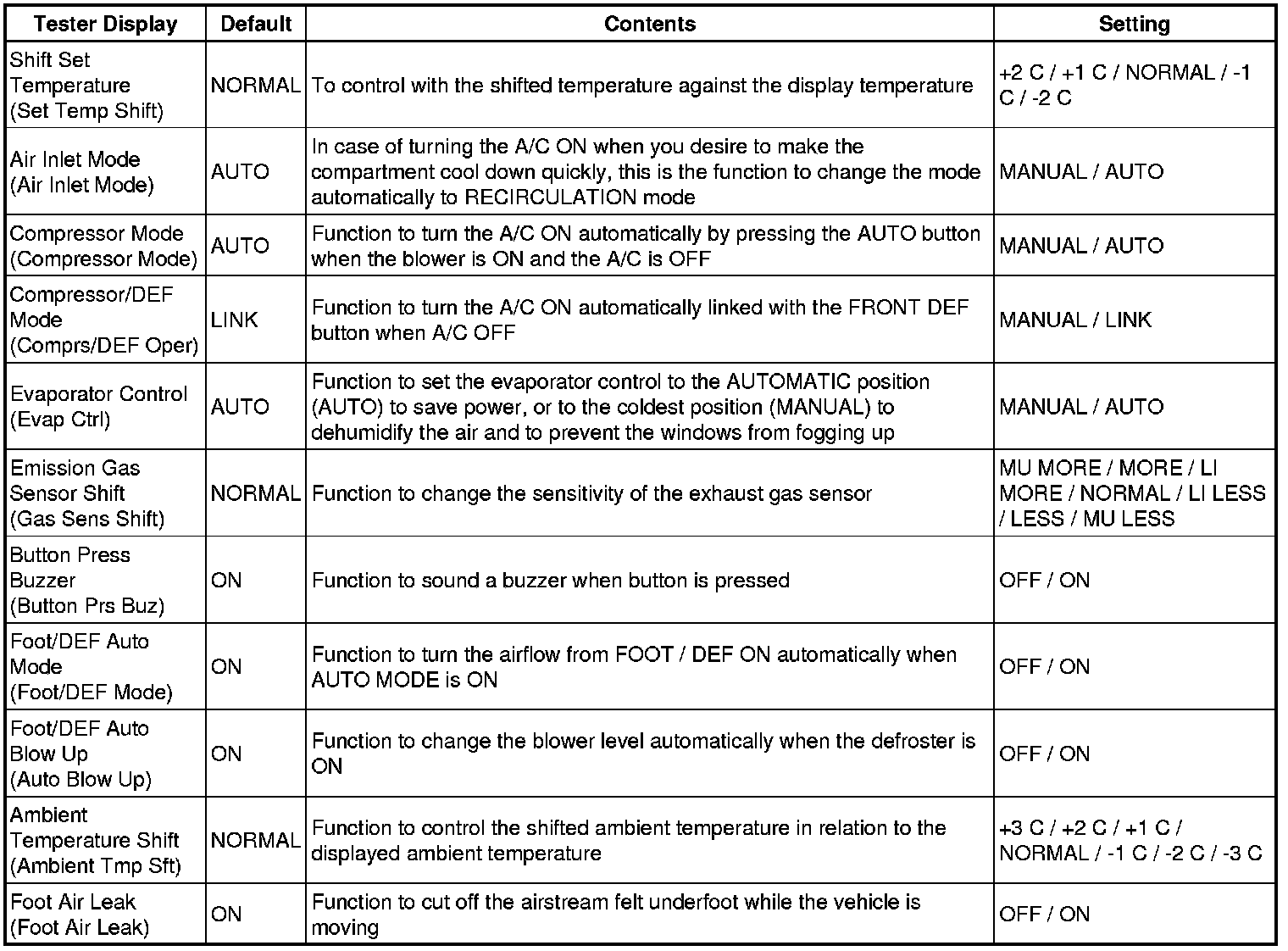 AIR CONDITIONING: AIR CONDITIONING SYSTEM: CUSTOMIZE PARAMETERS