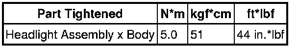 SERVICE SPECIFICATIONS: LIGHTING: TORQUE SPECIFICATIONS