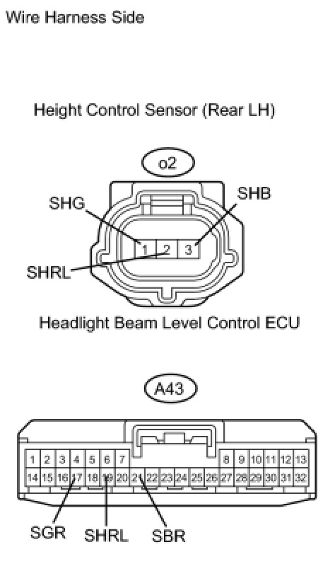 (b) Check the wire harness between the headlight beam level control ECU and height control sensor (rear LH).
