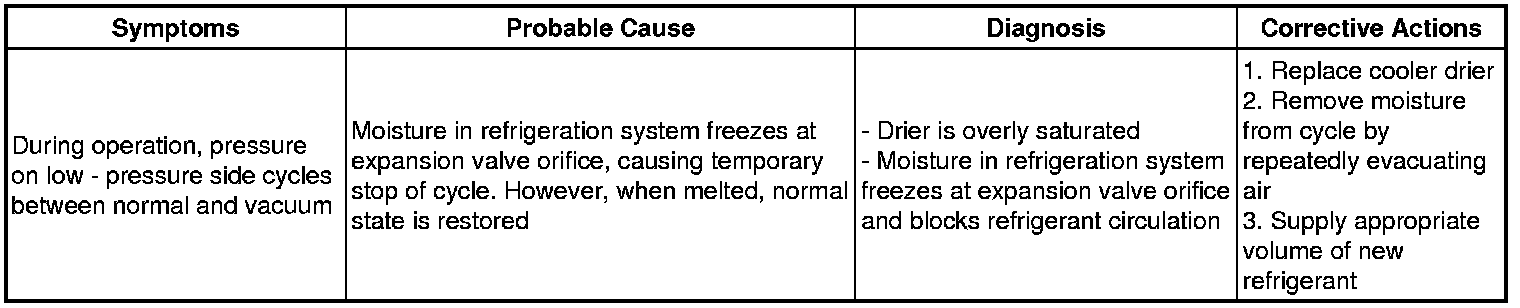 (2) The A/C system periodically changes between normal and improper function due to moisture in the refrigerant system.