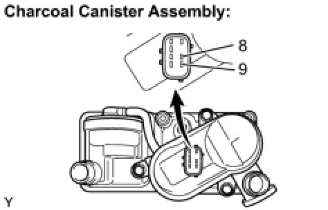 (c) Apply the battery voltage to terminals 8 and 9 terminals of the canister pump module.