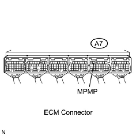 Measure the voltage between terminal MPMP of the ECM connector and the body ground when the leak detection pump is turned ON and OFF using the Techstream.