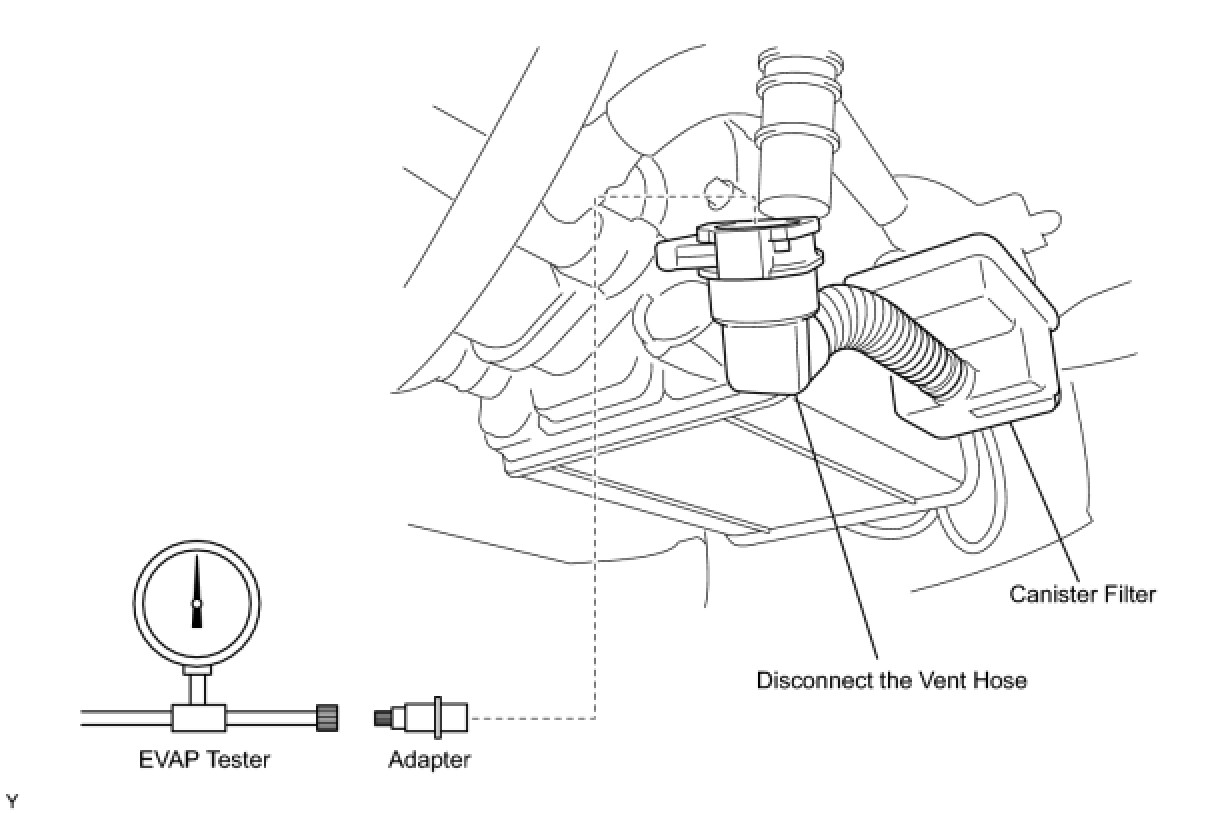 (b) Connect the EVAP pressure tester tool to the canister with the adapter.
