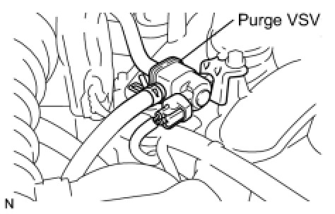 (a) Disconnect the hose (connected to the intake air surge tank) from the purge VSV.